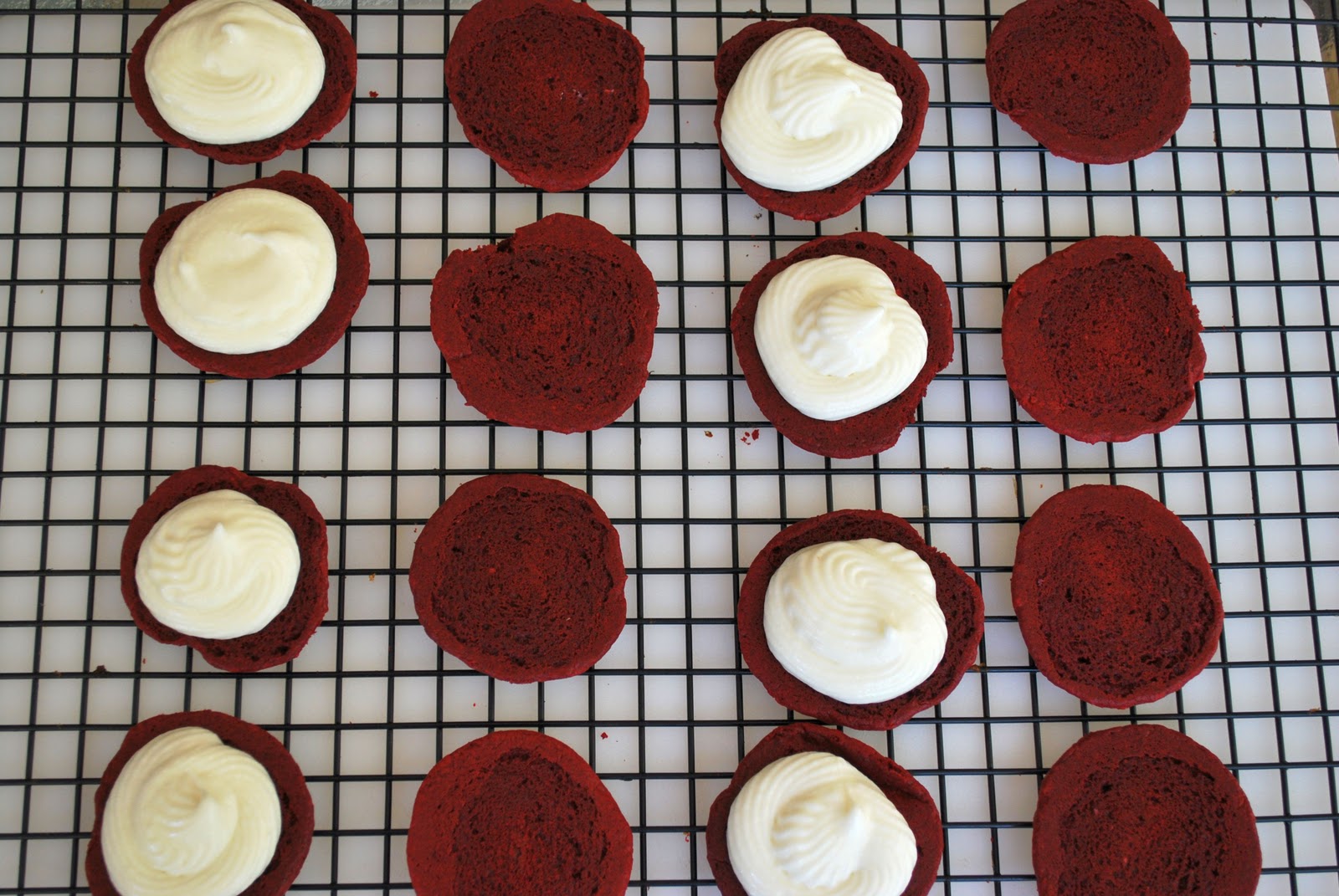mmm, how delicious! i love whoopie pies in all flavors + red velvet are no exception. awesome idea for a gameday dessert!